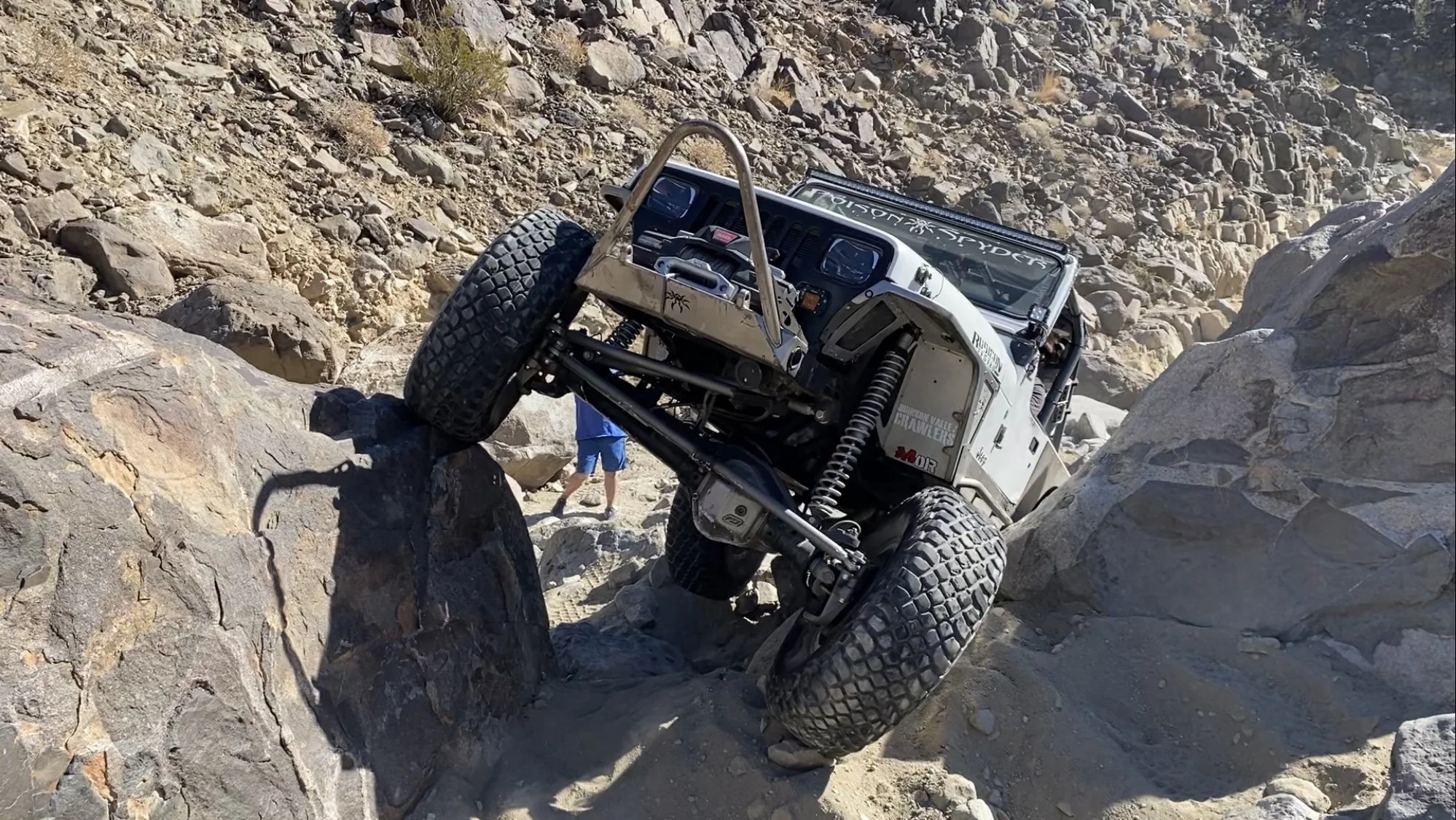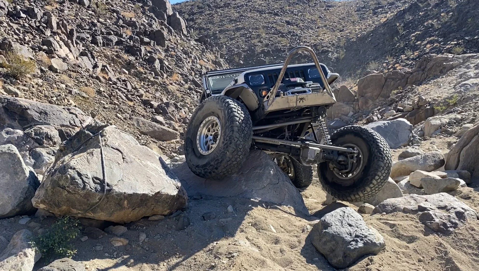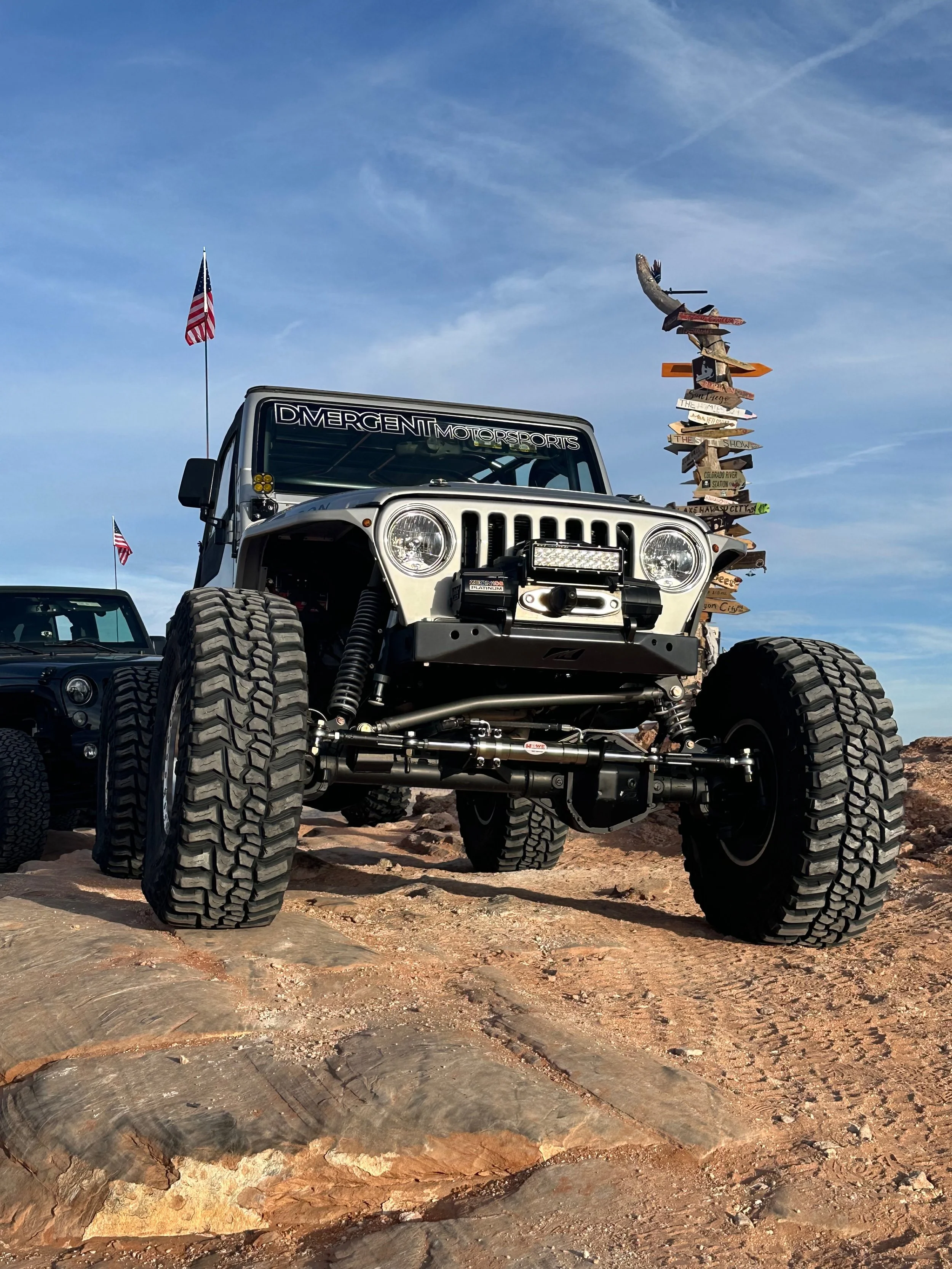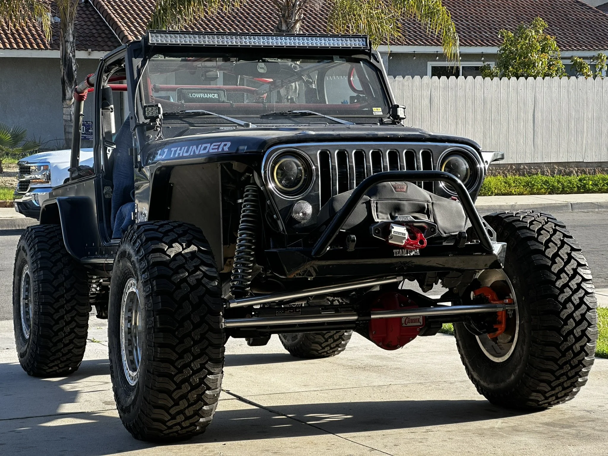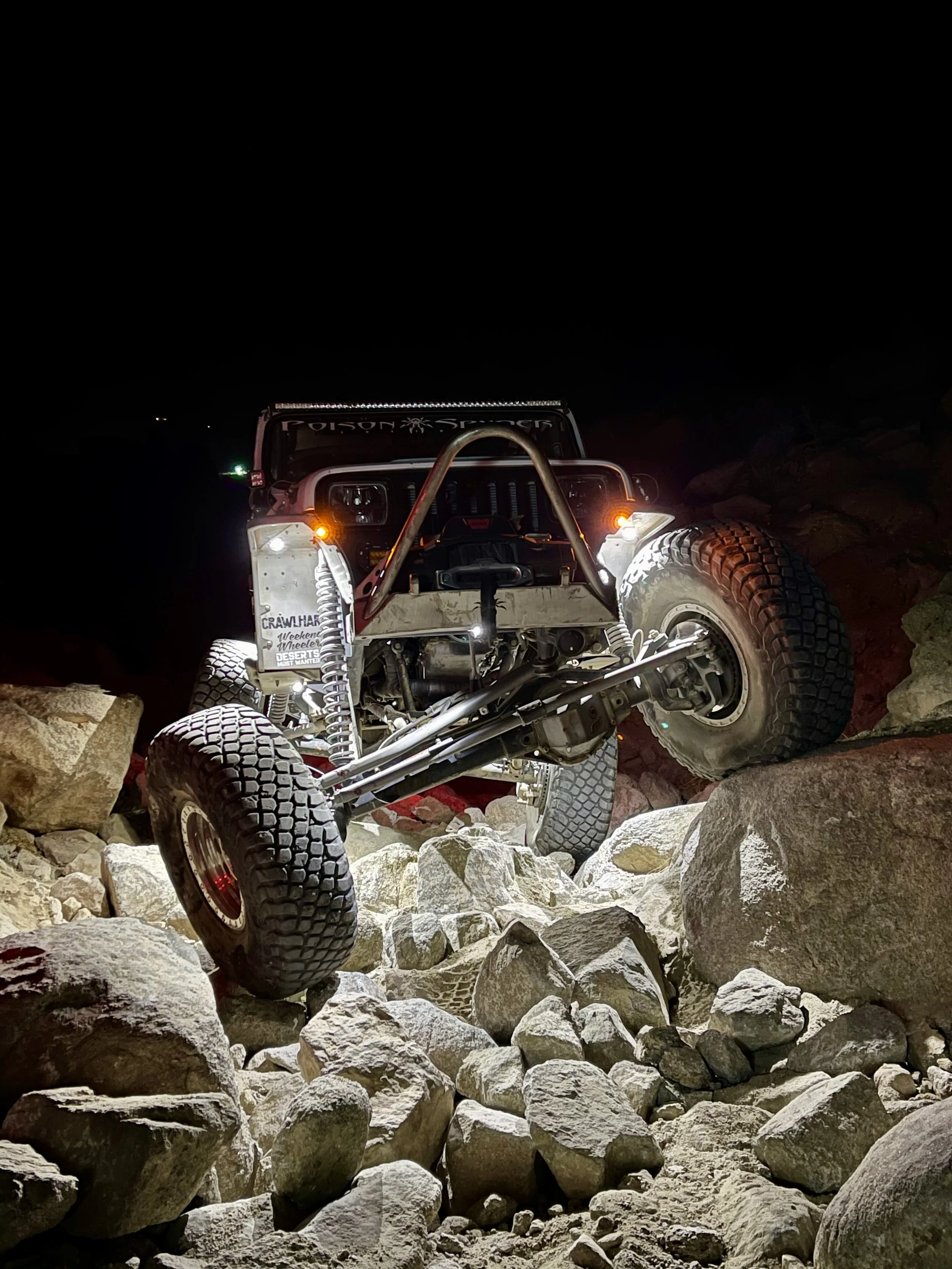 Jay Randall’s LJ is simple but checks all the boxes, Low LCG, Wider than stock, 12” coilovers front and rear, hydraulic bumps, all the armor and hydraulic assist steering.