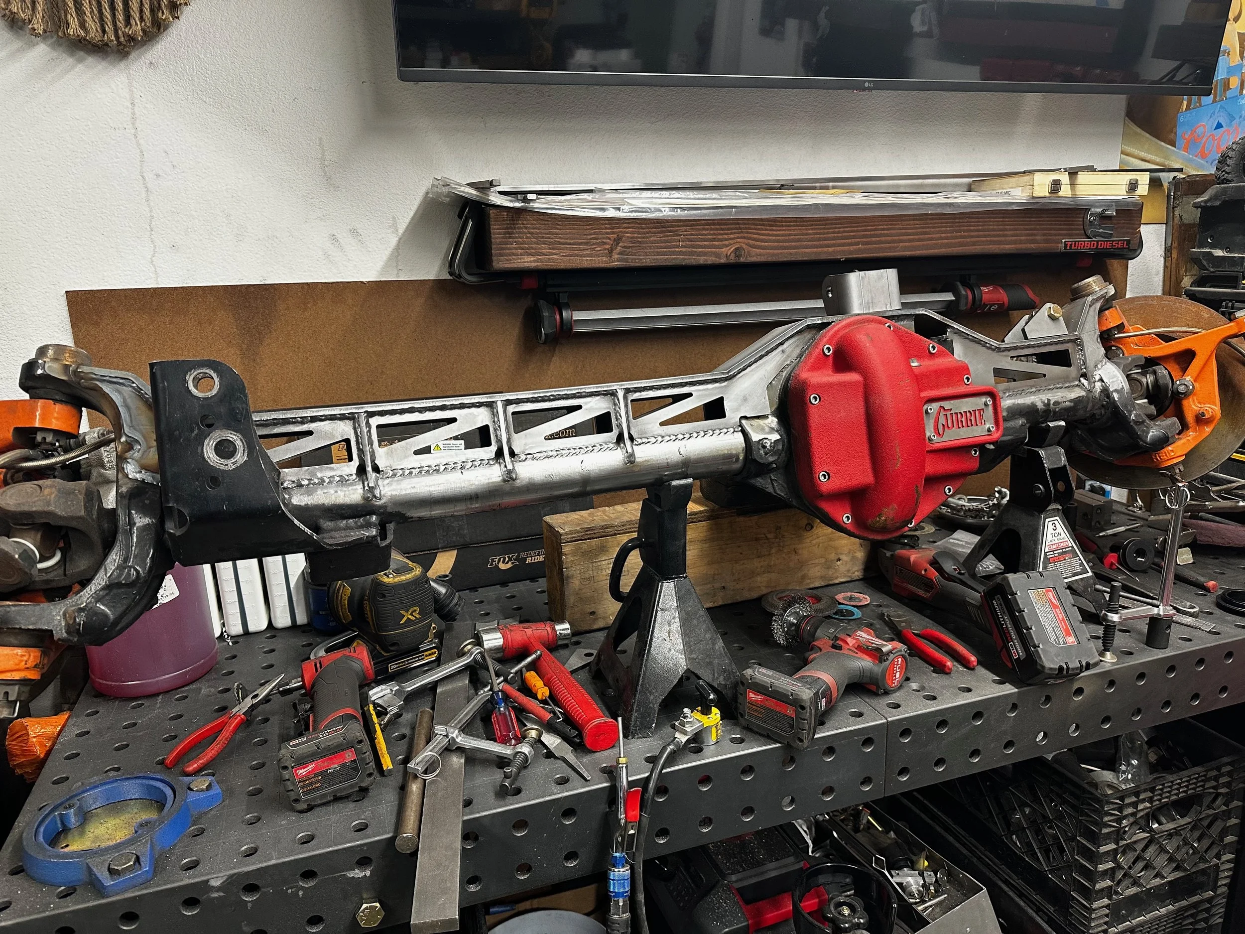 Front Dana 60 with 5.38’s and an ARB.Front axle has custom truss to run a Howe 2.75 x 10” full hydro ram.