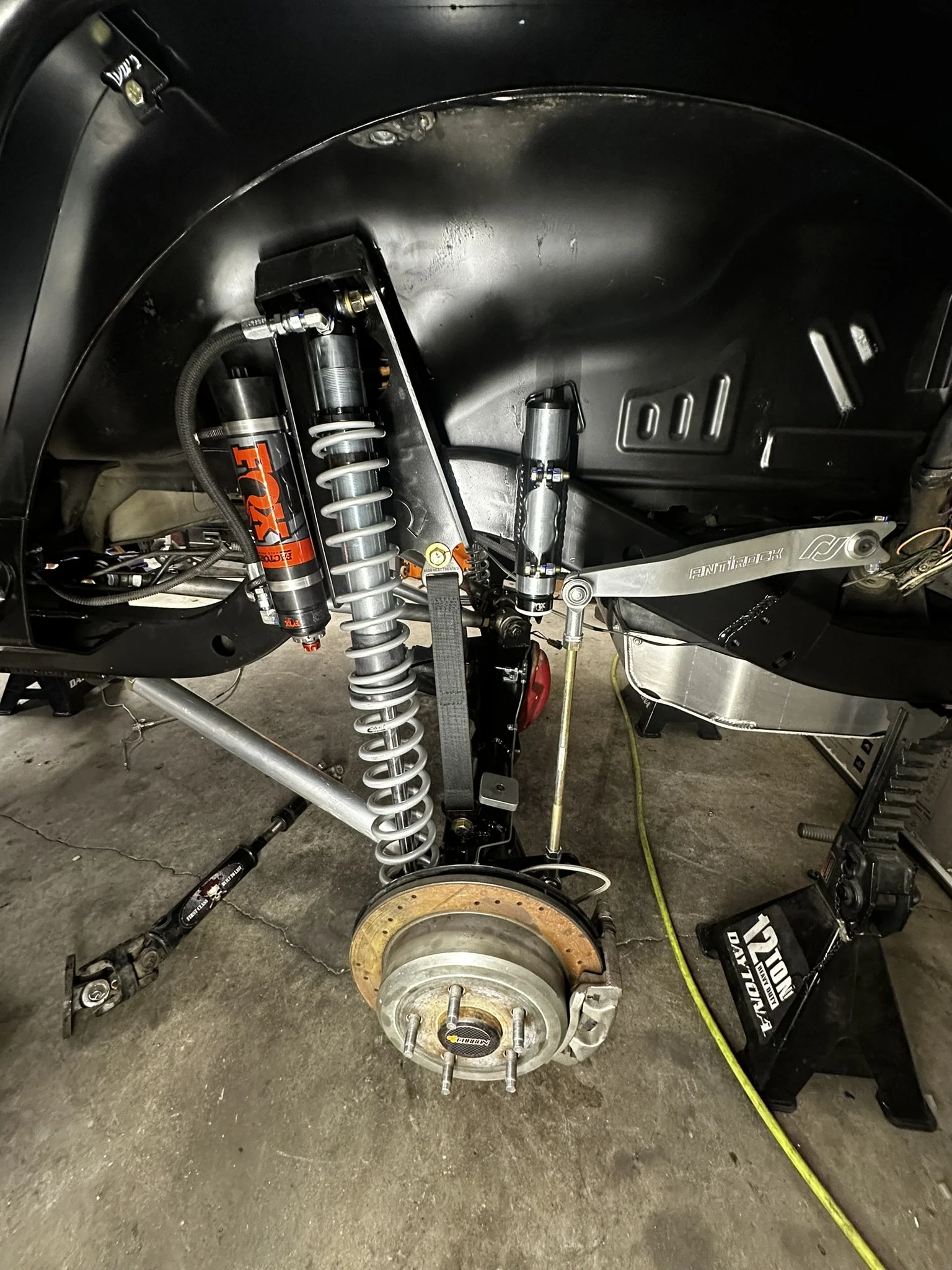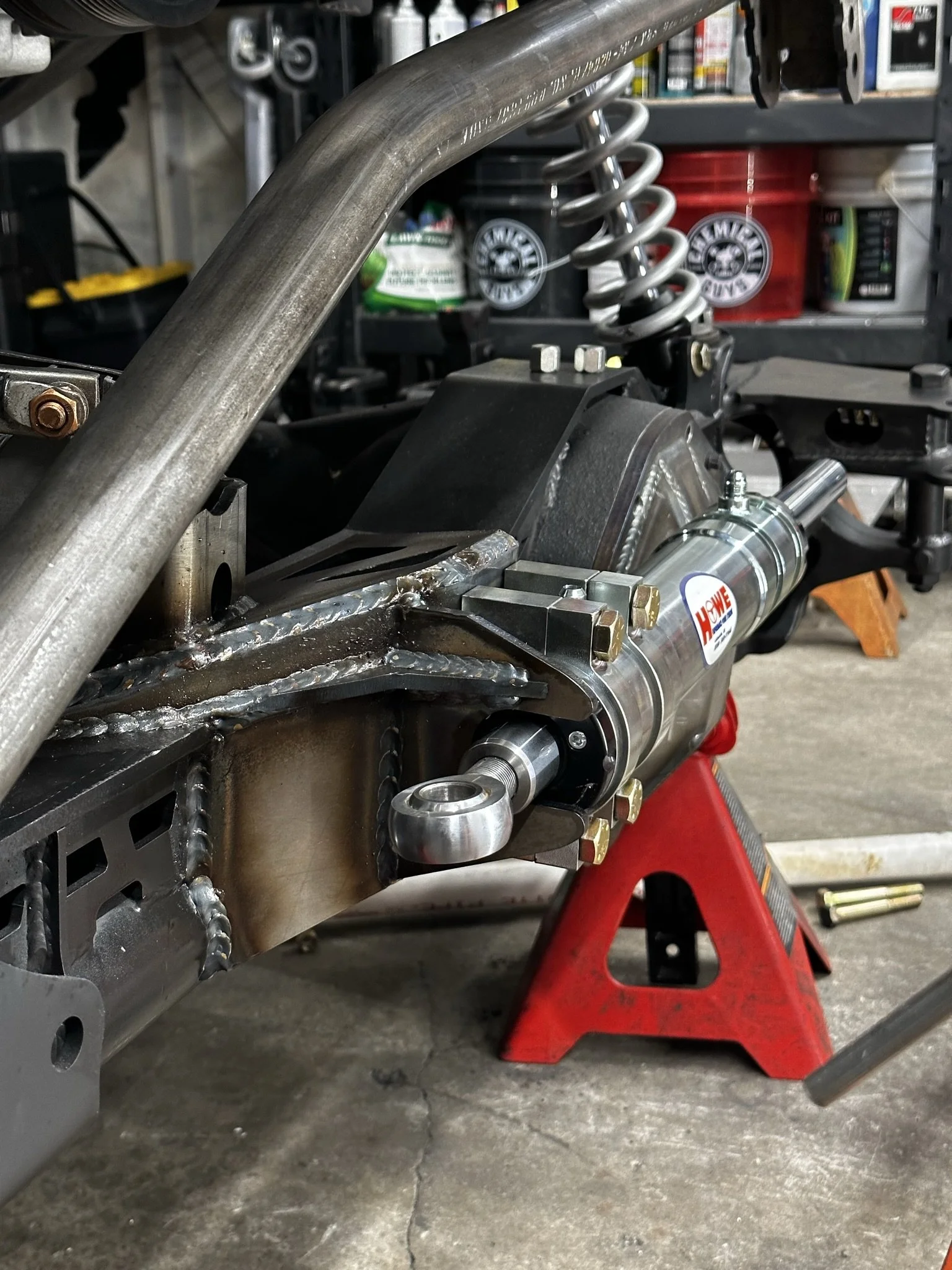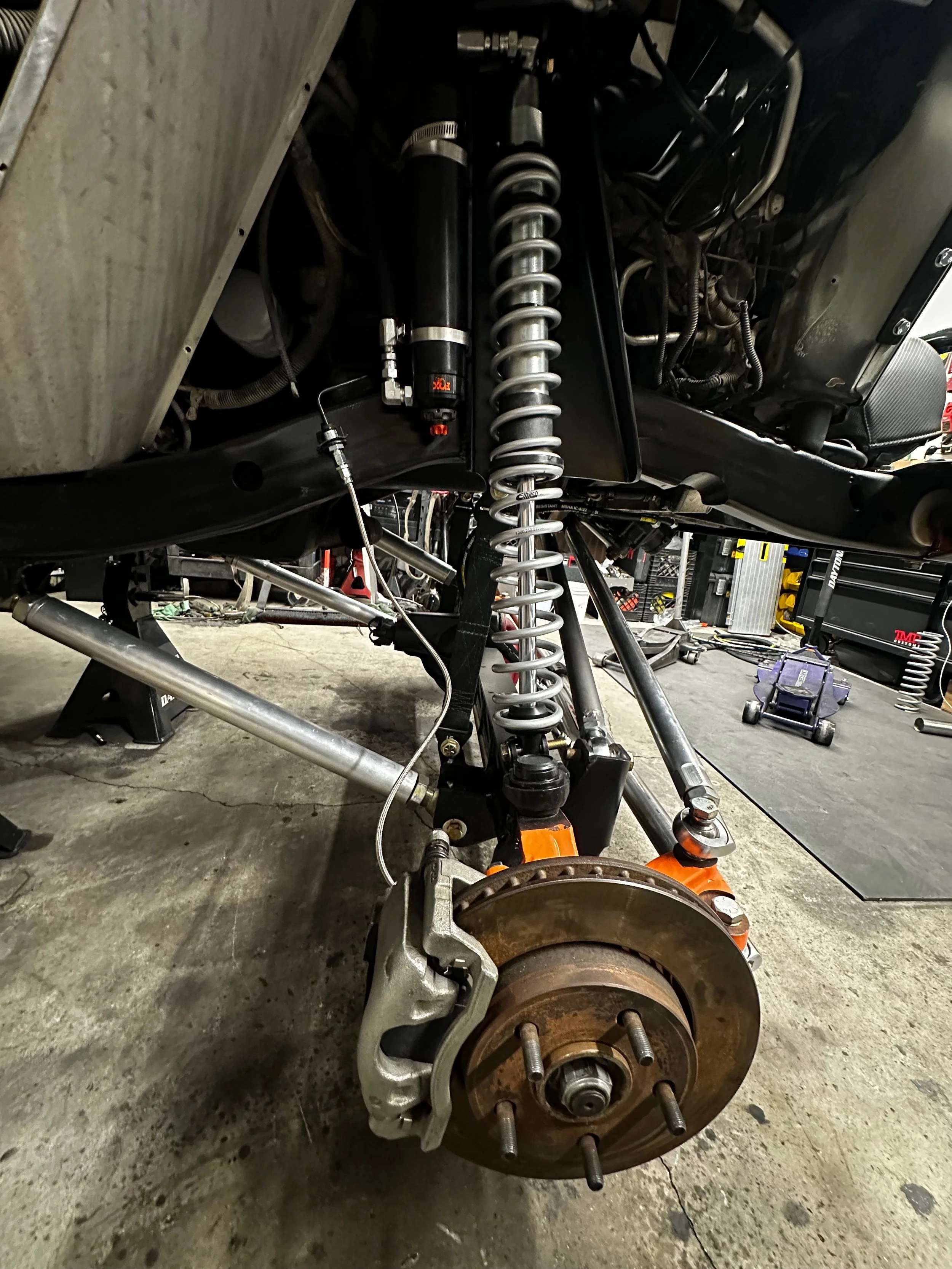 We went a little wild with a front-half & back-half to gain the most uptravel without going full buggy. this front/backhalf allows us to gain 2.5” extra up travel and use all the added clearance of PSC front fenders without rubbing.