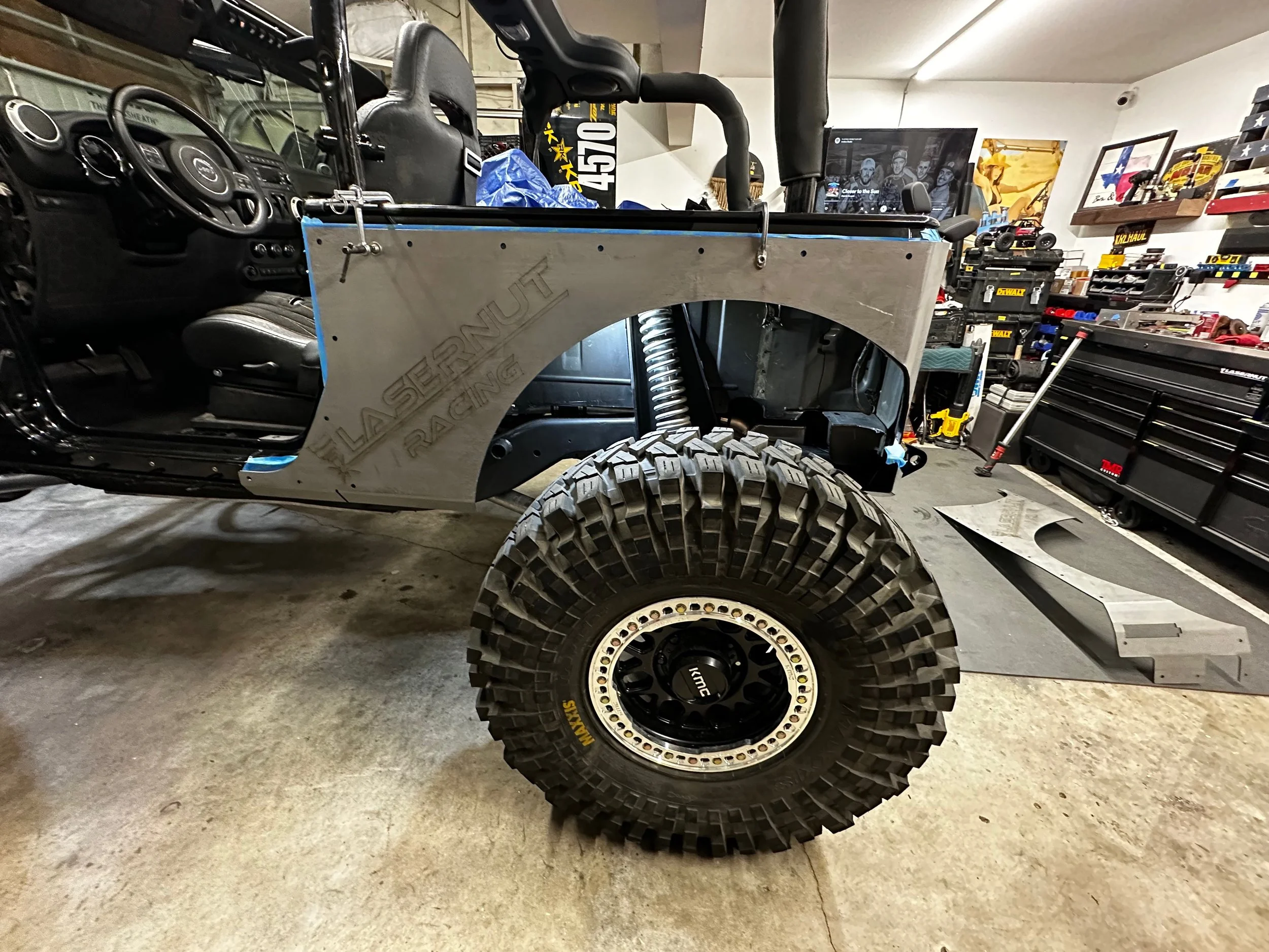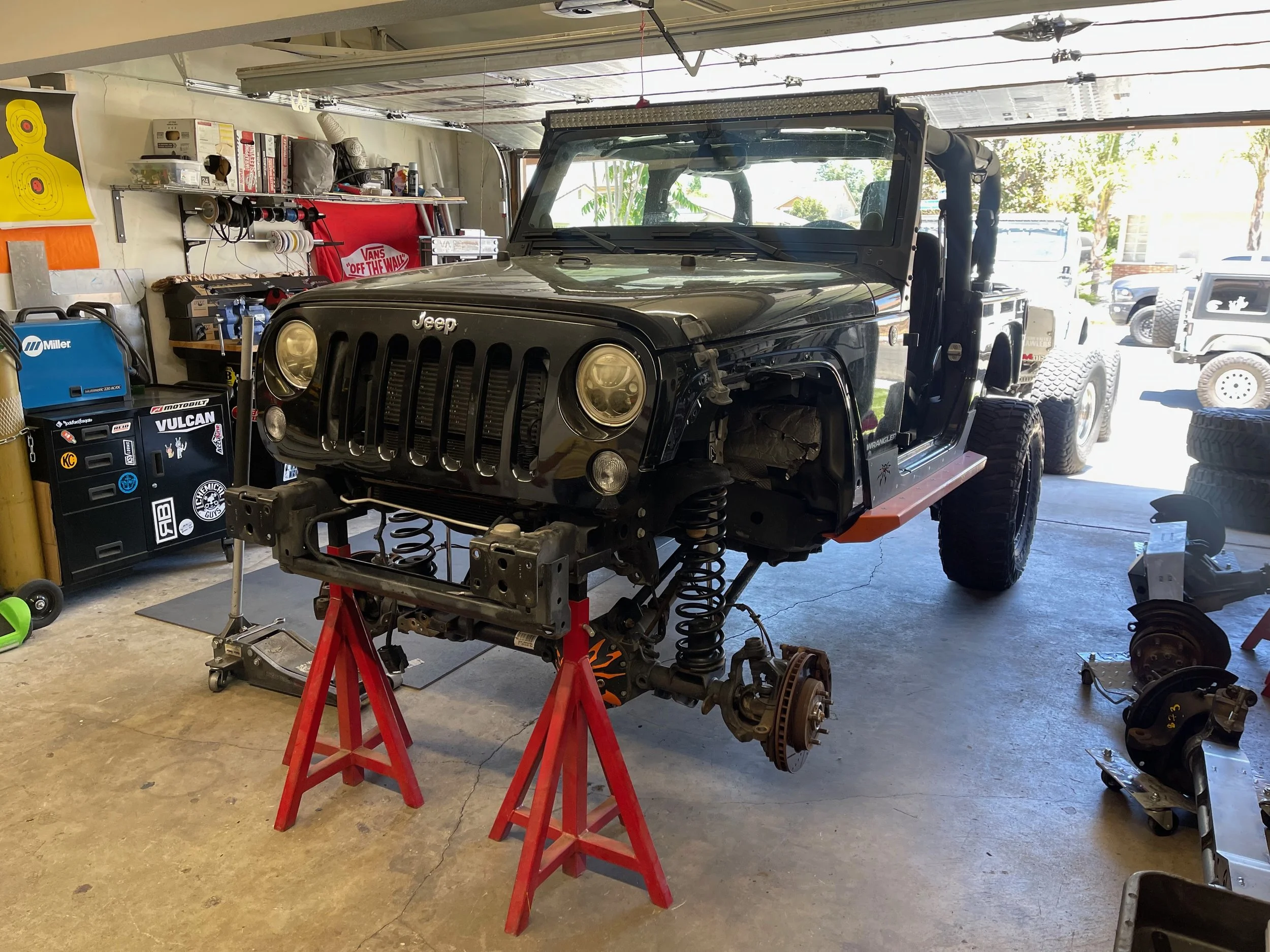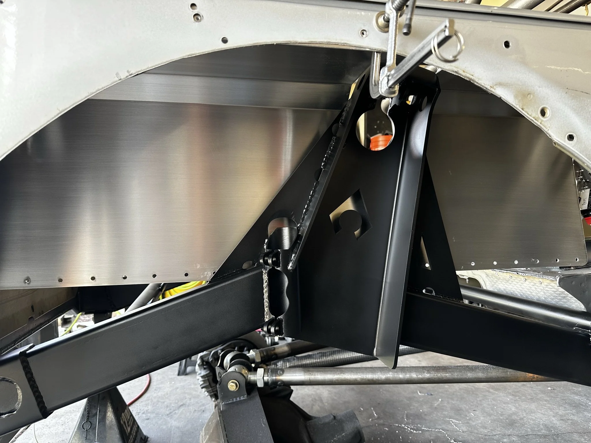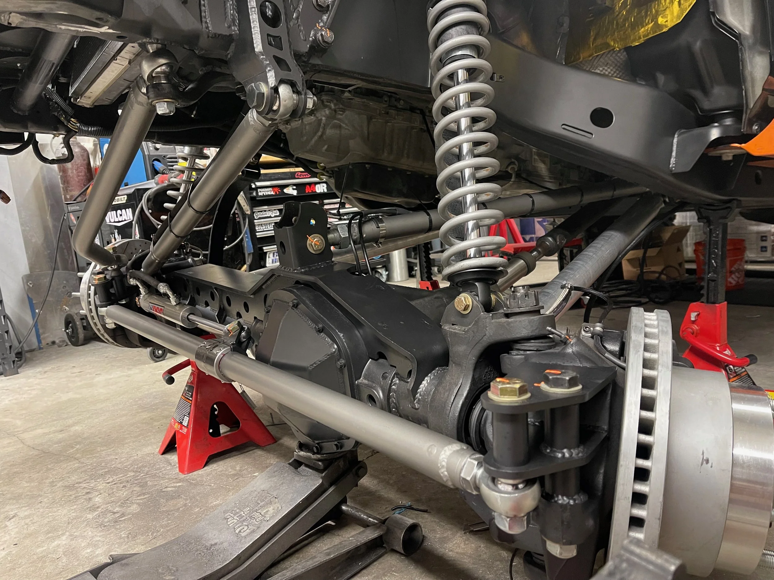 We went a little wild with a front-half & back-half to gain the most uptravel without going full buggy. this front/backhalf allows us to gain 2.5” extra up travel and use all the added clearance of PSC front fenders without rubbing.